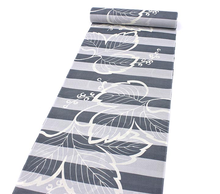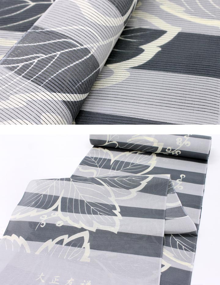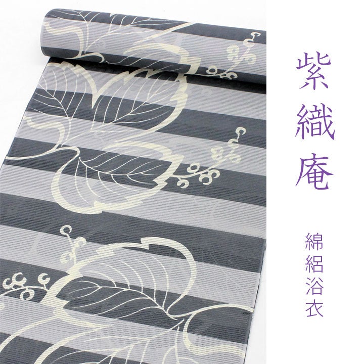 【大正友禅】紫織庵-綿絽地浴衣グレイ濃淡(グレー系)/横段つた