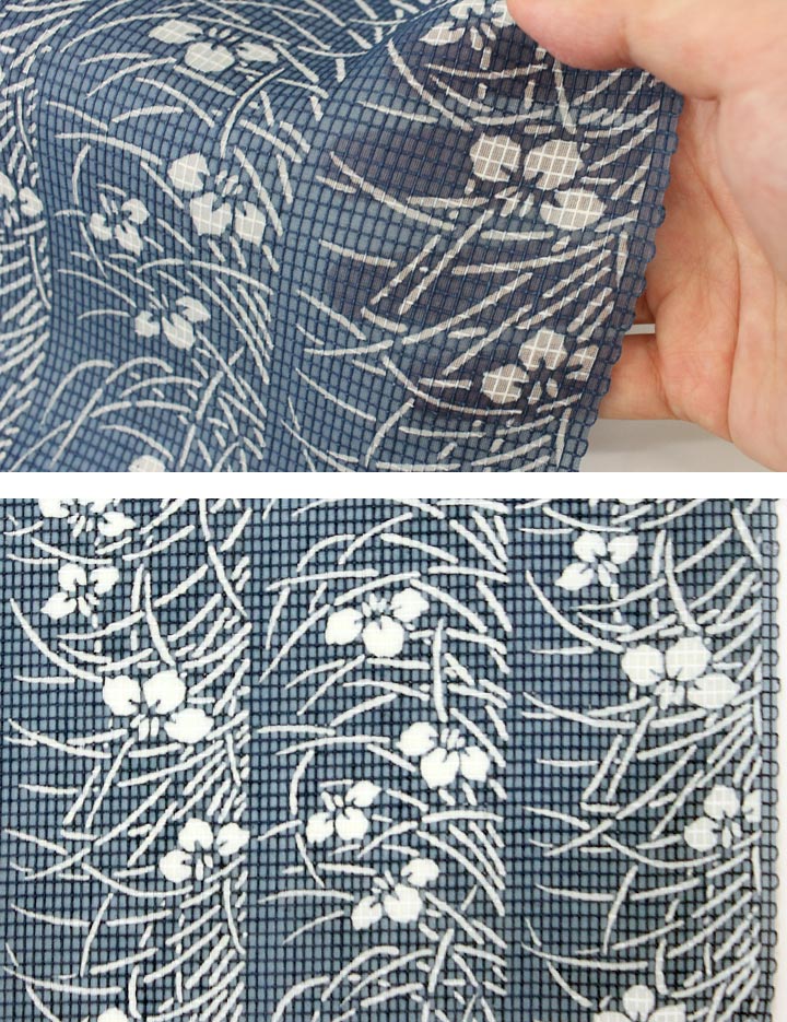 注染ゆかたは、技法の特性上「型の継ぎ目」や