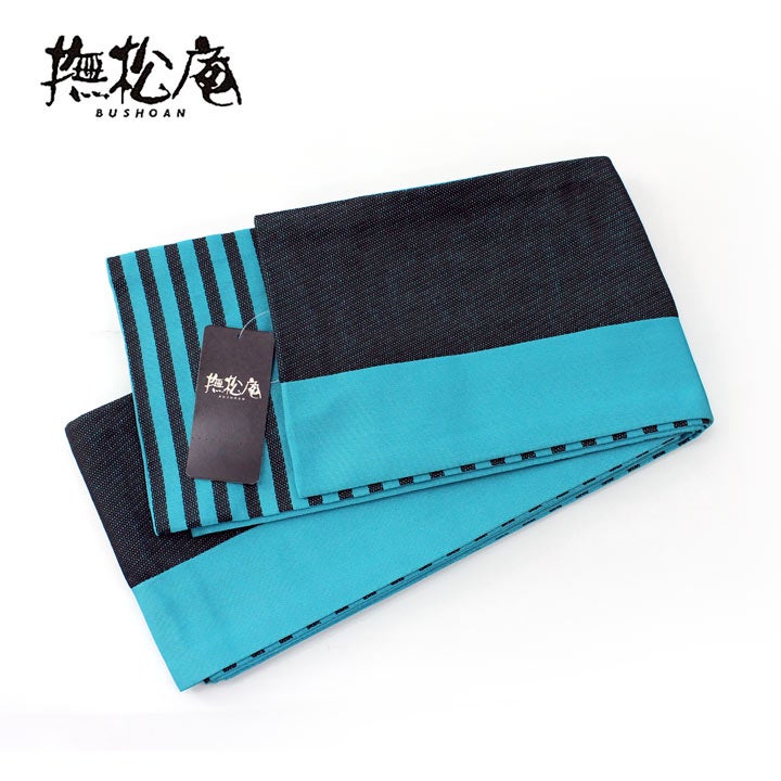 撫松庵ゆかた帯ブロック01 ピーコック(青緑系)【半幅帯】【送料無料】