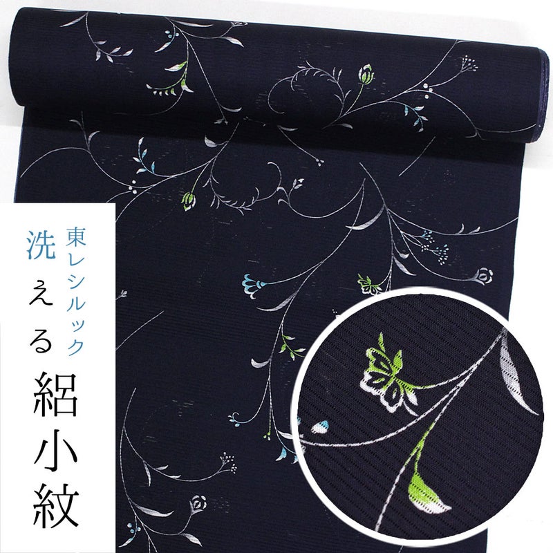 東レシルック 絽小紋sl-rk496 駒絽 紺色/唐草 【洗える夏着物】