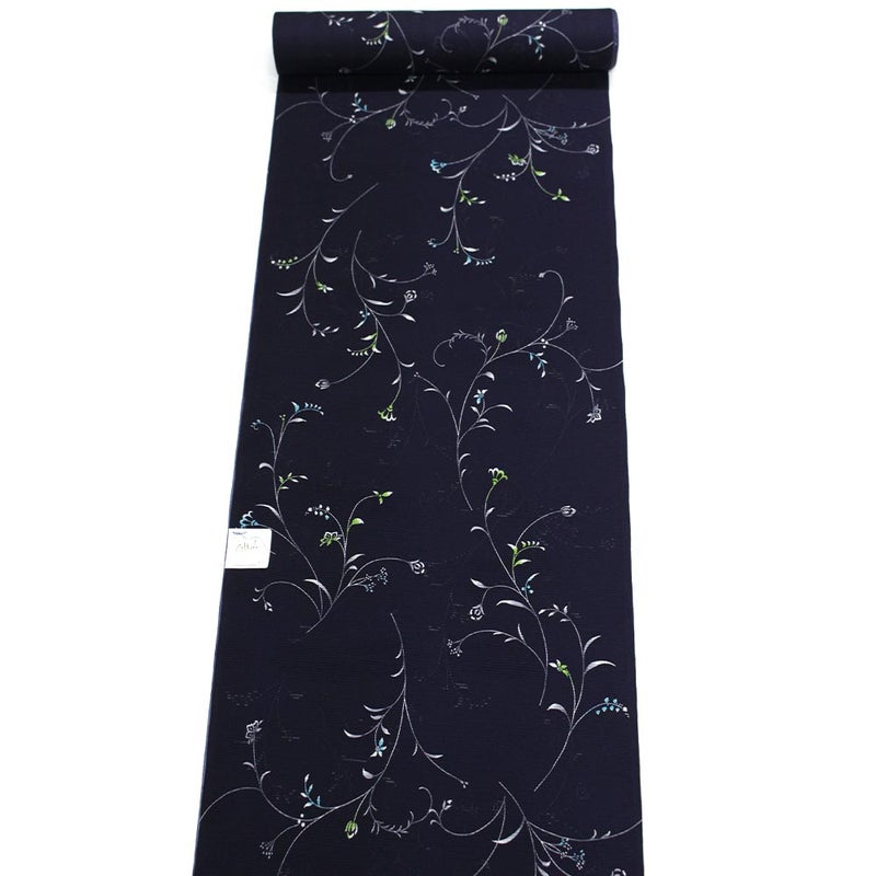 駒絽 紺色/唐草 【洗える夏着物】