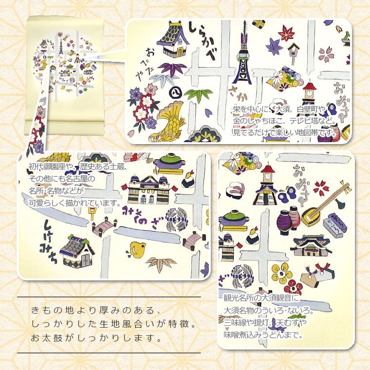 名古屋帯 名古屋の名所地図 (お仕立て付き)