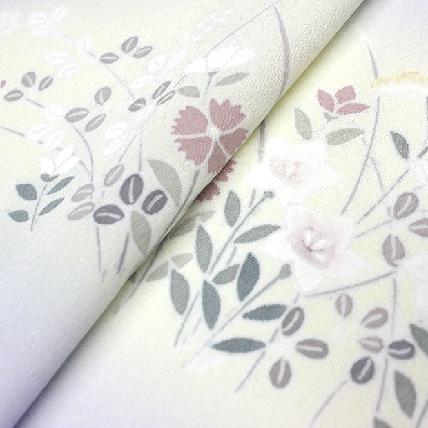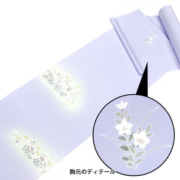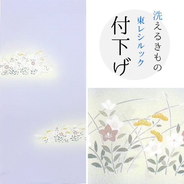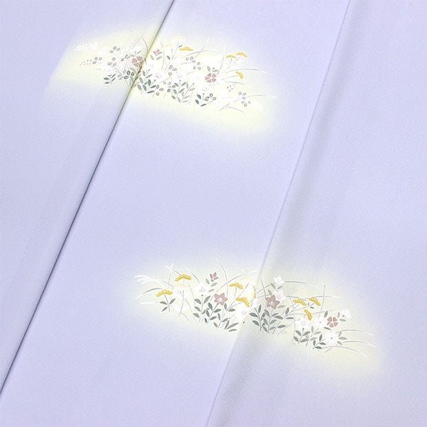 東レシルック 付下げ t152黄・薄青紫系 萩桔梗撫子