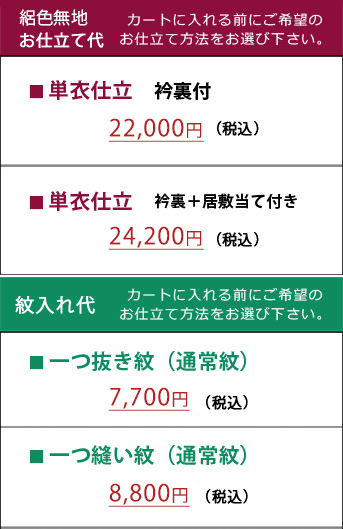 *仕立の有無・方法を選択ください。