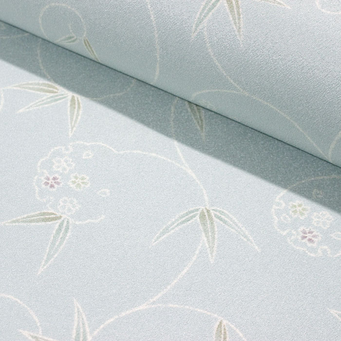 ちりめん地 薄水色/笹蔓
