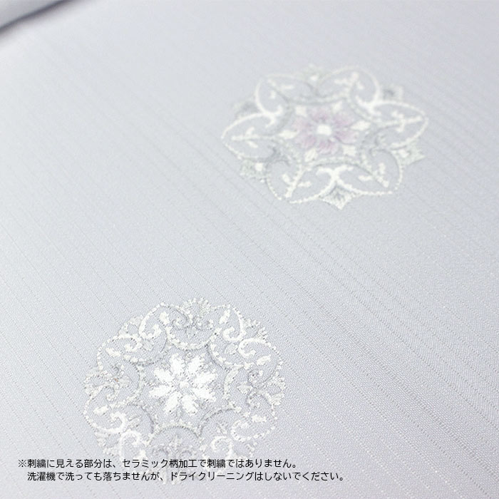 絽ちりめん 薄灰色ぼかし/セラミック染(刺繍風)華紋