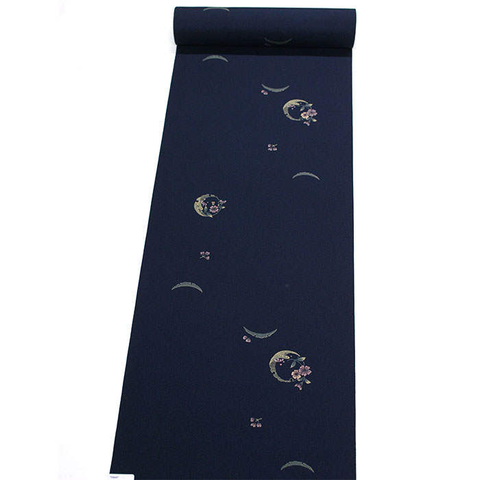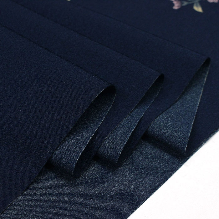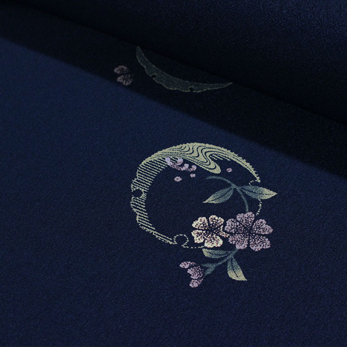 ちりめん地 紺色/つゆ芝に雪輪に花