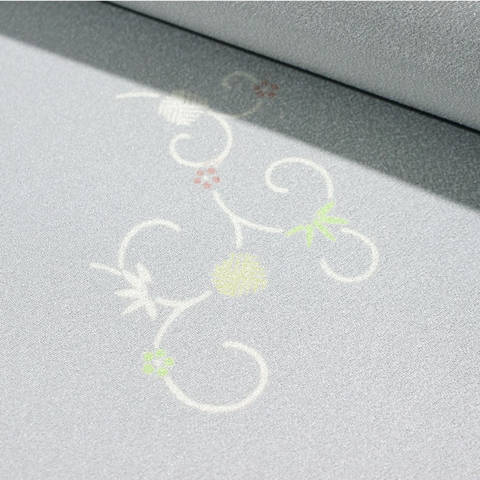 ちりめん地 薄グレー色/笹蔓