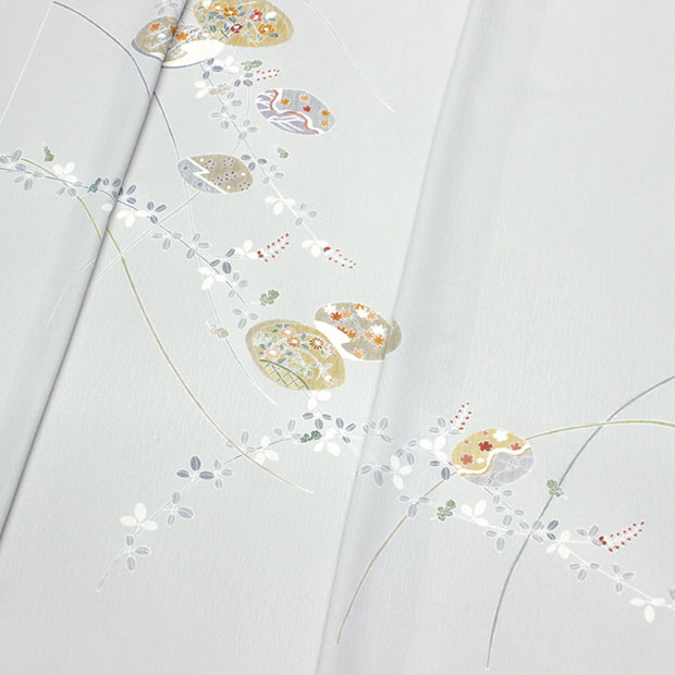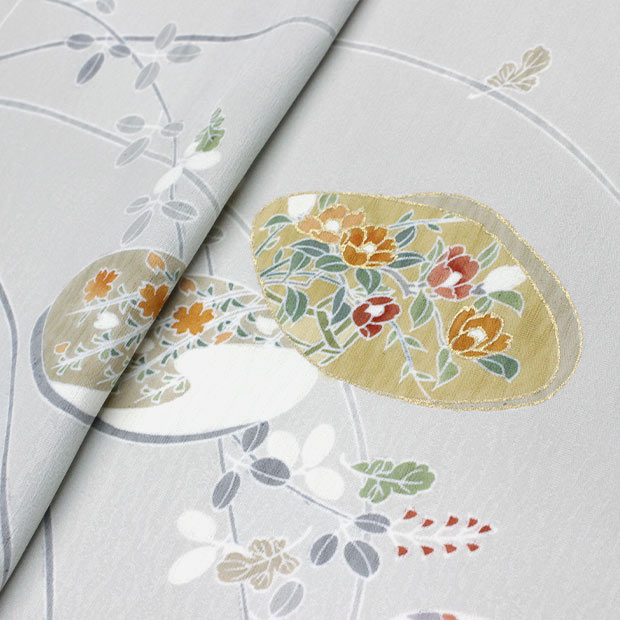 手描き本友禅【奏美】グレー 貝合わせに萩