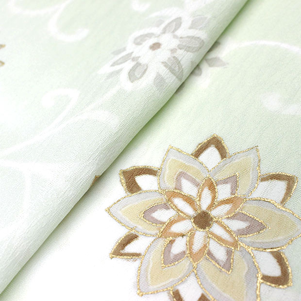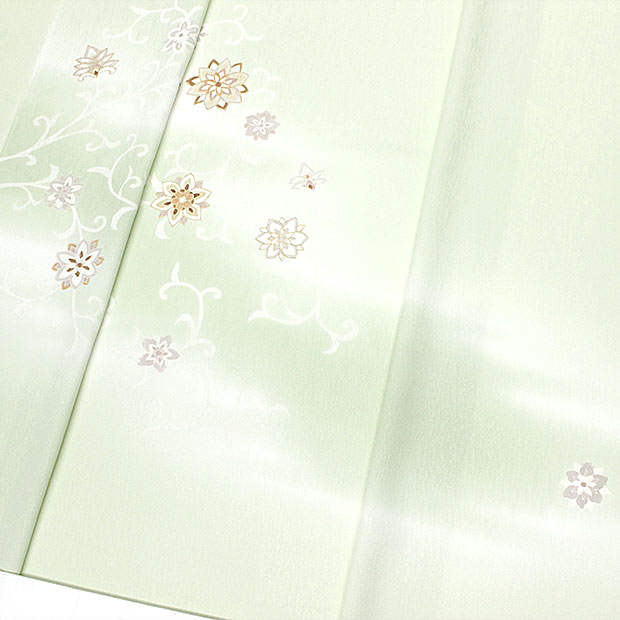 手描き本友禅【奏美】 薄黄緑色 唐草唐花